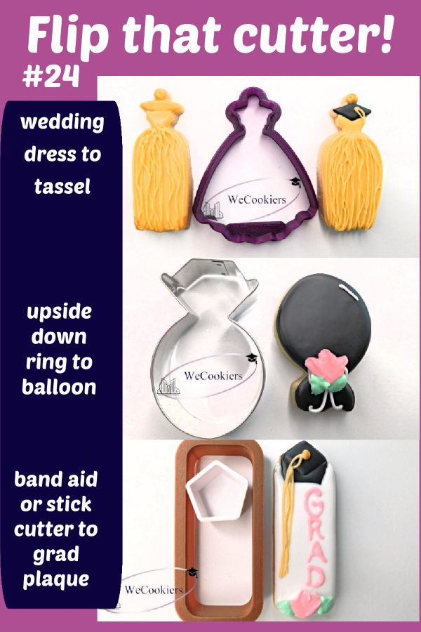 Being a shero isn't easy.In 1836 the term was coined ‘shero’. What does it mean? Oxford Languages defines it as a woman admired or idealized for her courage, outstanding achievements, or noble qualities…’ I included it in this periodical because, on top of our regular orders, Mother’s Day and graduations also bombard us. Of course, we still have all the other hats to wear in our daily life. Therefore, you should be deemed a SHERO! Today's Highlights1. newest page at WeCookiers.com 2. your question, my answer 3. graduation cookie cutter flips 4. graduation cookie inspo photo 5. business sense 6. quick business tipsNewest Pages at WeCookiers.comGraduation Sugar Cookies with a couple of graduation videos, including a video for the 3 flips in this periodical! Graduation Sugar Cookies LinkIn case you missed the newest page before...Russian Piping Tips: This page covers (first and foremost the ones I'm giddy about) the MINI Nifty Nozzles, the large Russian piping tips, and the large Russian ball tips. Russian Piping Tips Your Questions, My AnswerQ: How do you disassemble an airbrush for cleaning? What solution do you use for cleaning an airbrush after each time?A: I have given a link to my airbrushing page on how to clean the airbrush. This walks you through the entire process, step by step, and reassembling it. Definitely bookmark that link. It’s invaluable! I find no need at all in buying expensive cleaning solutions. I’ve used plain white vinegar since I got my airbrush system years ago. It’s up to you, but I find it a total waste of money to buy solutions that do not work nearly as well as white vinegar. Here's the link to cleaning and disassembling: airbrushing-cookies.html Graduation Cookie Cutter Flips-morph a band-aid and mini pentagon shape into graduation plaque-wedding dress into graduation tassel (cut of sides of dress) -wedding ring into a balloon (slightly cut off points by diamond)