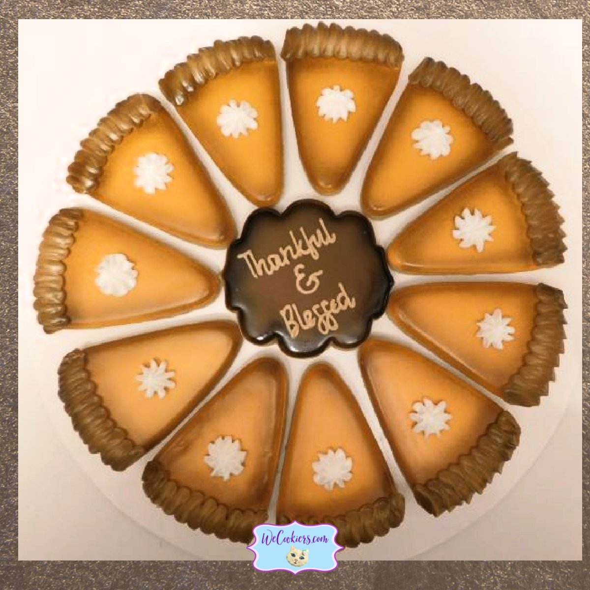 Click the image to be taken to the Cookie Cutter Flips page. (Sorry, if you have an email with just HTML, you will not be able to see the photos). Crazy Good Coffee Sugar Cookies, InspoOne thing I have been getting into lately are cookie platters.What are they? Cookies that are made to fit together in a circle. They are arranged on the platter and handed to the customer (or given as gifts) that way. They can be found on Etsy by searching ‘cookie platters’. Don't you just love the airbrushed look? It gives such depth. What is Thanksgiving without pie? I did a pumpkin pie for this, but cherry, blueberry, pecan, any works great! It’s all in the decorating!